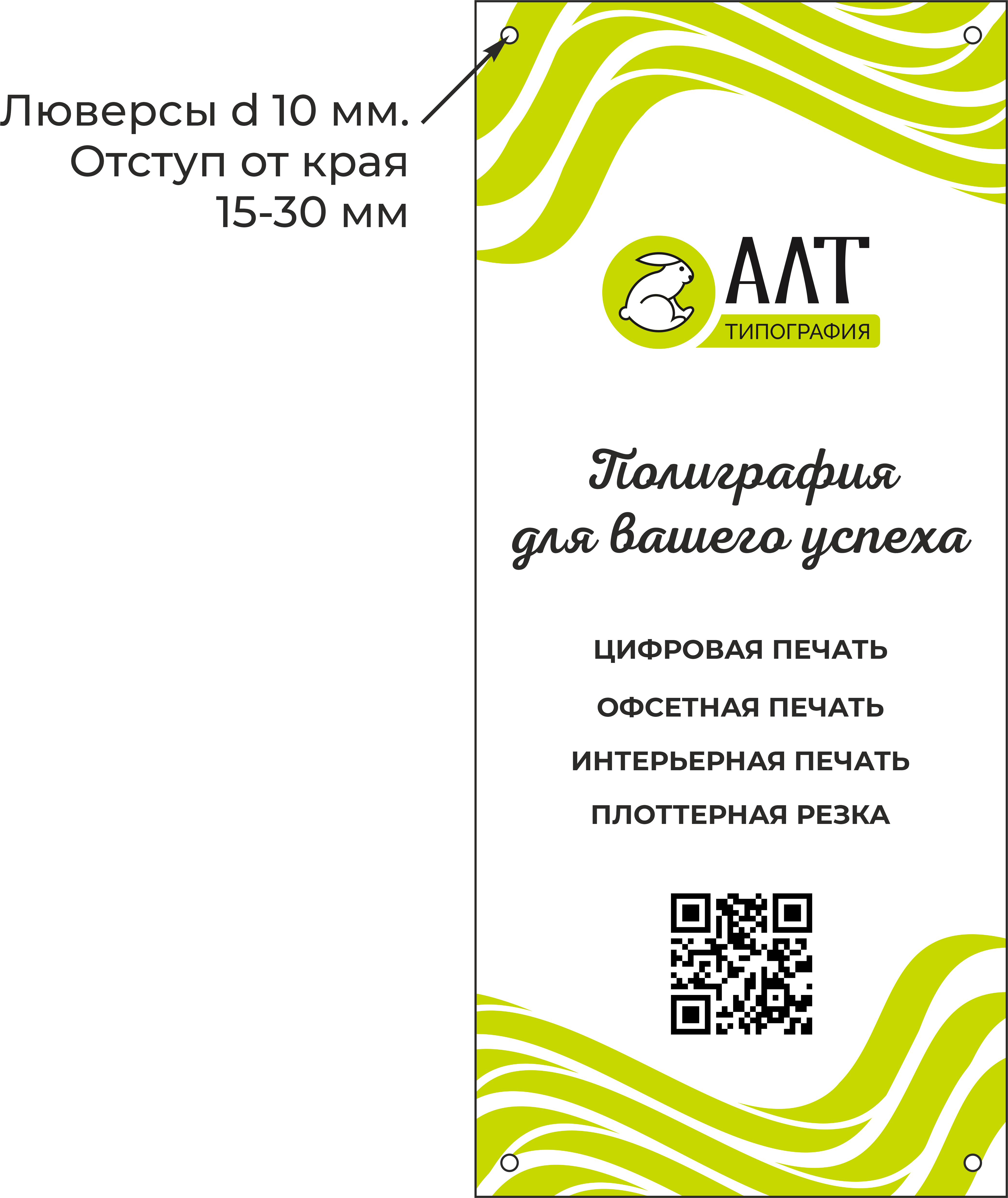 Учесть, что по углам баннера установлены люверсы d 10 мм.