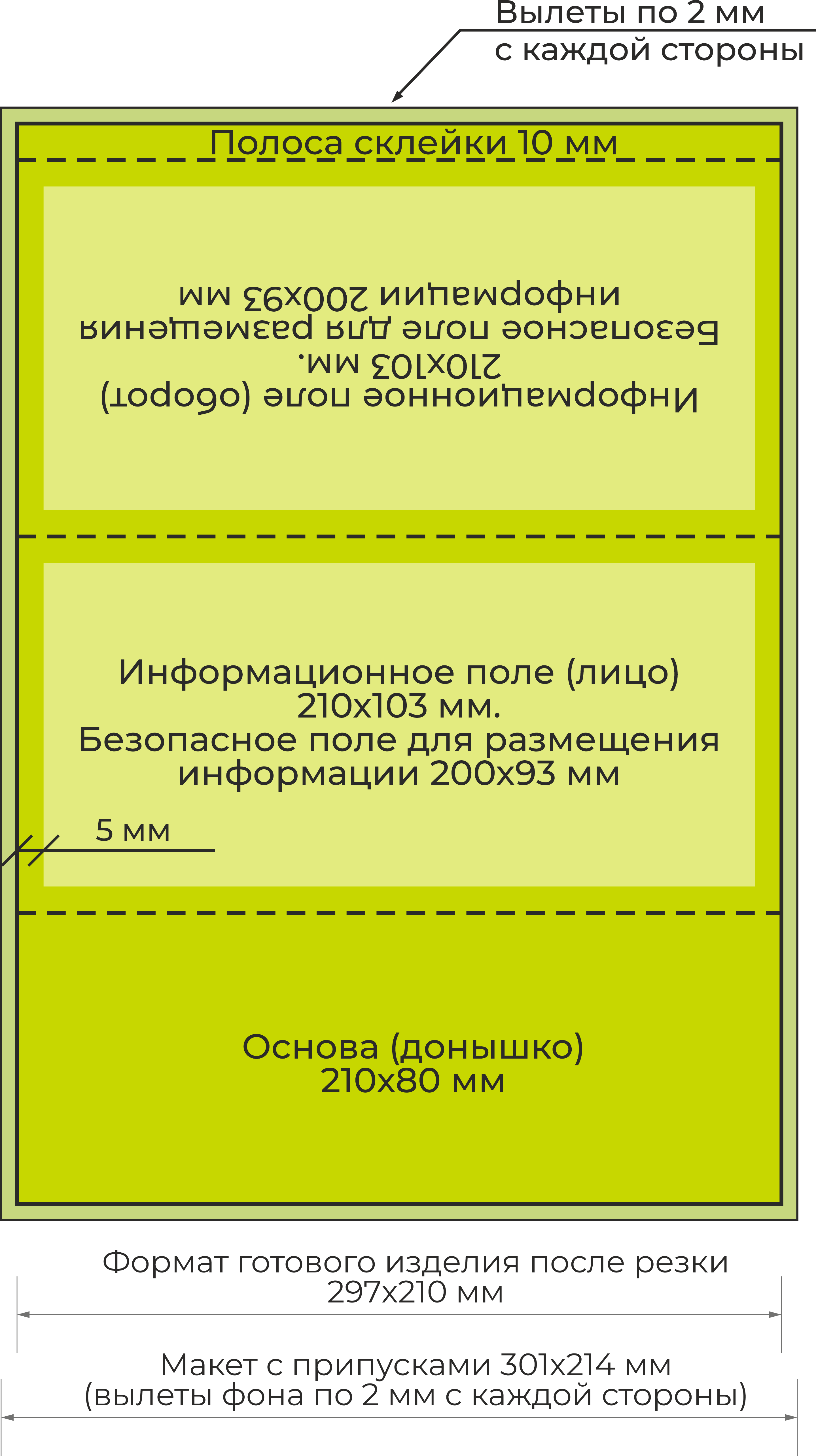 Размер информационных полей (лицо и оборот) 210х103 мм.