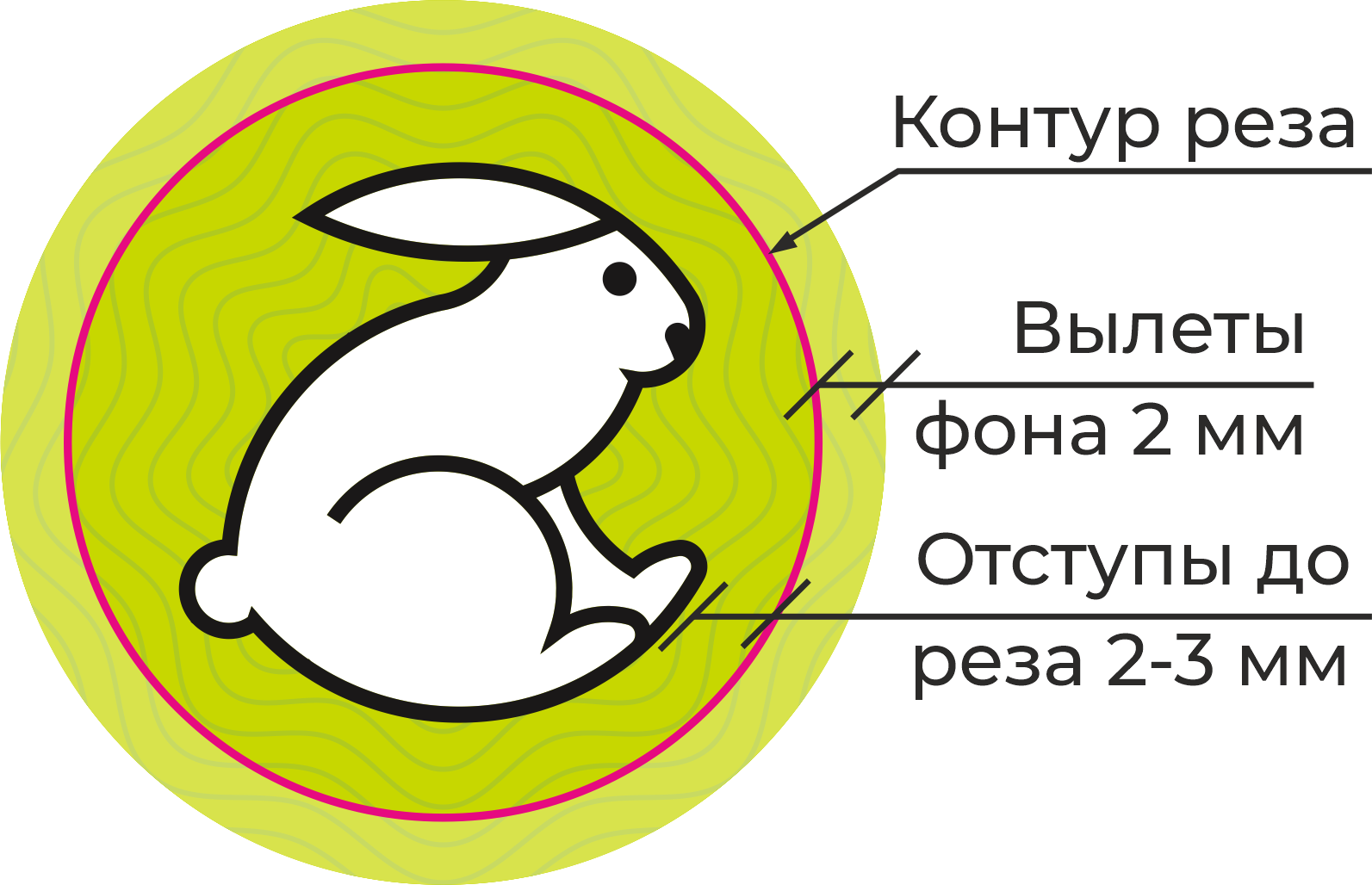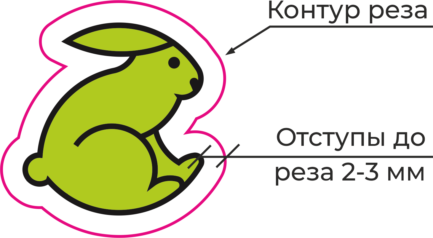 При изготовлении фигурных наклеек, а так же наклеек с одной из сторон равной 40 мм и менее – используется плоттерная резка. Все контуры реза обязательно должны быть в векторном формате!